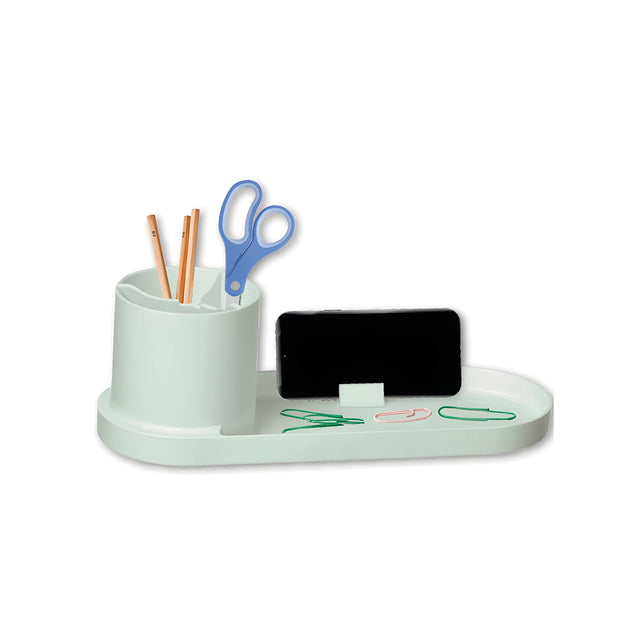 מעמד שולחני עם מתקן לטלפון בצבע ירוק ~ מעמד המתאים לטלפון, לעטים, למהדקים ועוד