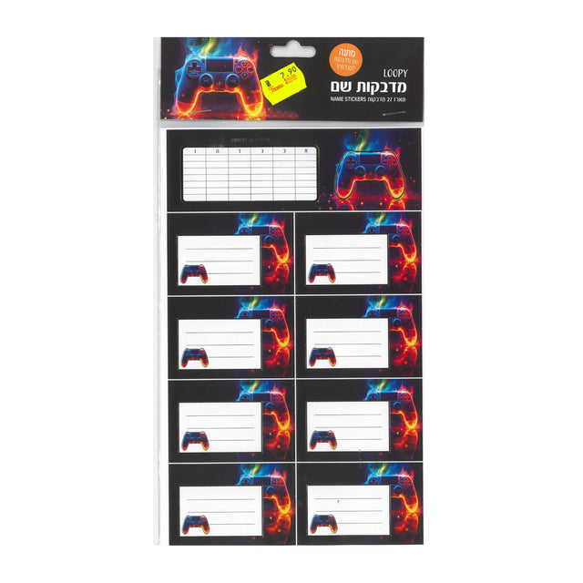 מארז מדבקות שם למחברת גיימר אש + מדבקות לסנדוויץ' הזמנה חוזרת