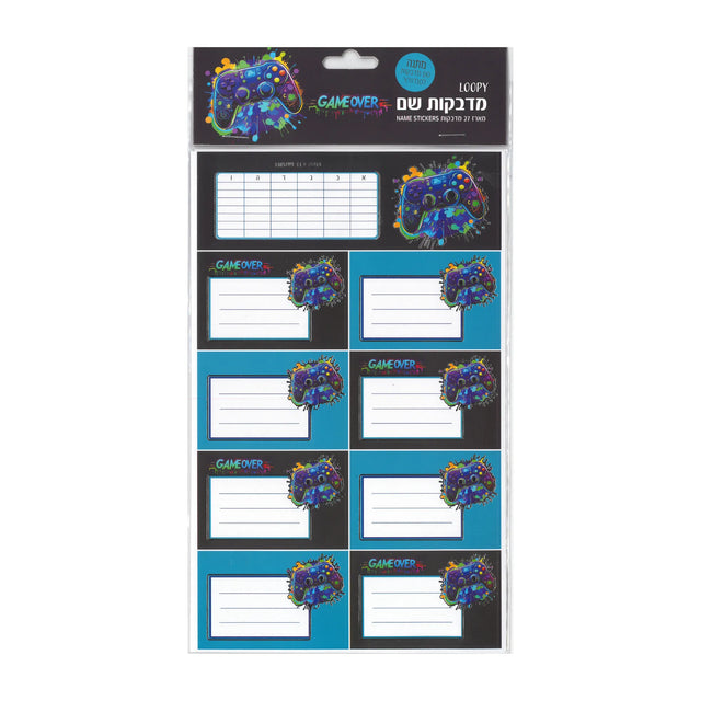 27 מדבקות שם למחברת דגם גיימר צבעוני + מדבקות לסנדוויץ'