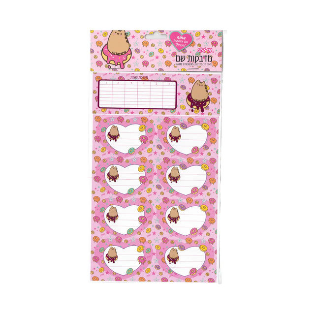 מארז מדבקות שם למחברת חתול דונאטס + מדבקות לסנדוויץ' הזמנה חוזרת
