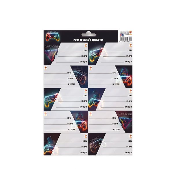 3 דפי מדבקות שם למחברת דגם גיימינג (10 יח' בכל דף)