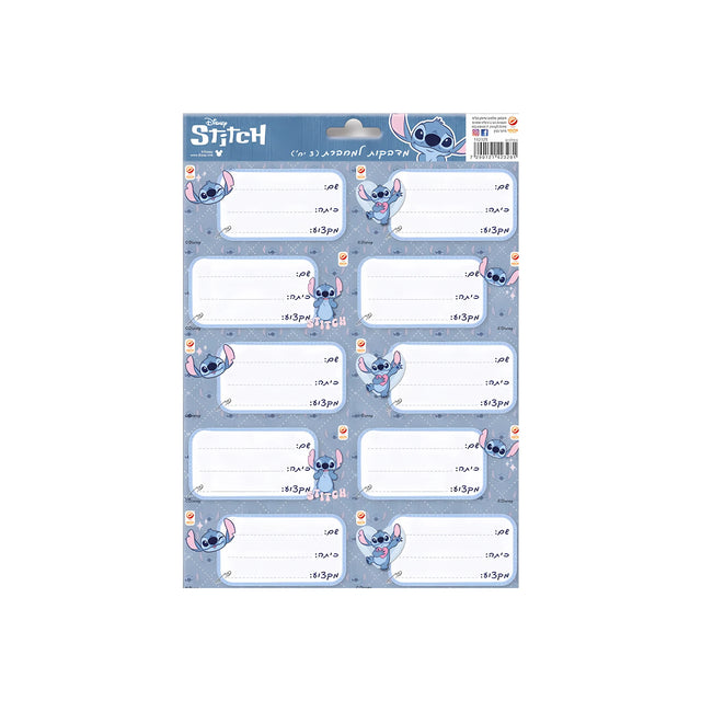 3 דפי מדבקות שם למחברת דגם לילו וסטיץ (10 יח' בכל דף)