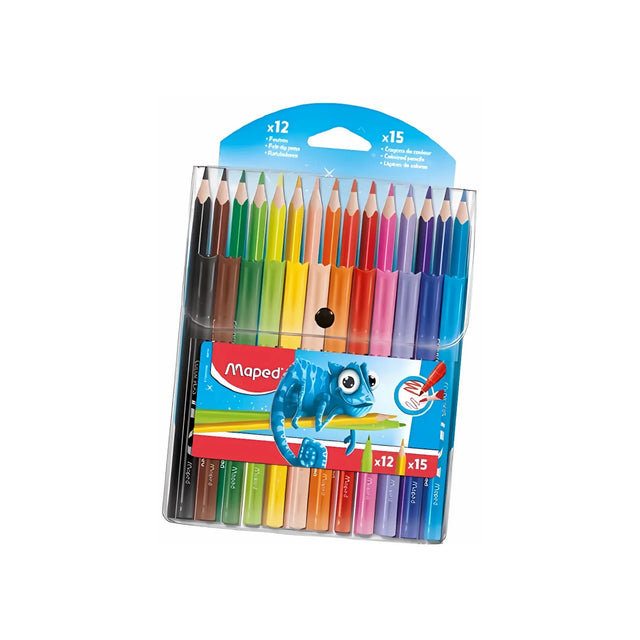 הסט כולל: 12 טושים ו- 15 עפרונות צבעוניים