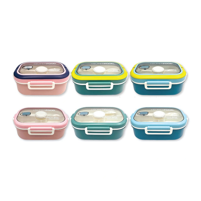 קופסת אוכל עם מגש מחולק + מיכל לרוטב וסכו"ם