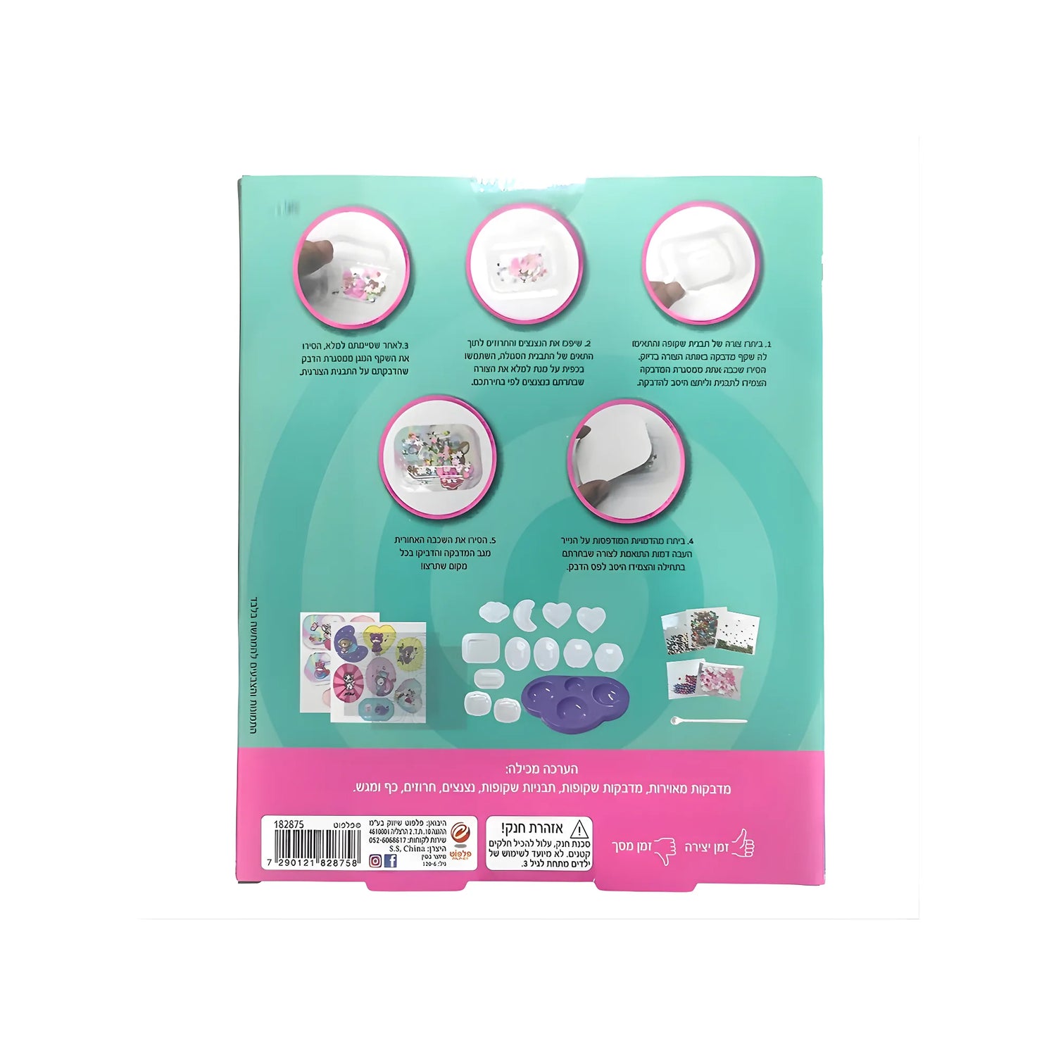 ערכת יצירת מדבקות תלת מימד ~ בחרו צורה של תבנית שקופה, התאימו לה שקף מדבקה באותה הצורה, קשטו עם נצנצים וחרוזים, בחרו דמות והסירו את השכבה האחורית!